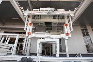 Nuestro separador ofrece un excelente rendimiento de separación en bloques y paneles de hormigón con una gran variedad de tamaños. Las tortas maduras que han sido tratadas en autoclave serán transportadas al elevador del separador, que las colocará en un lugar donde las abrazaderas puedan alcanzar las dos primeras filas de bloques o paneles. A continuación, los bloques o paneles son separados por los cilindros de aceite y las barras guía. Acabado este proceso, los cilindros de aceite regresarán a su posición inicial. El elevador, junto con los bloques o paneles, descenderá para la separación de la segunda fila. Cuando todos los bloques o paneles han sido separados, el elevador volverá a su posición original y los bloques y paneles serán retirados. El equipo está listo para repetir el proceso.